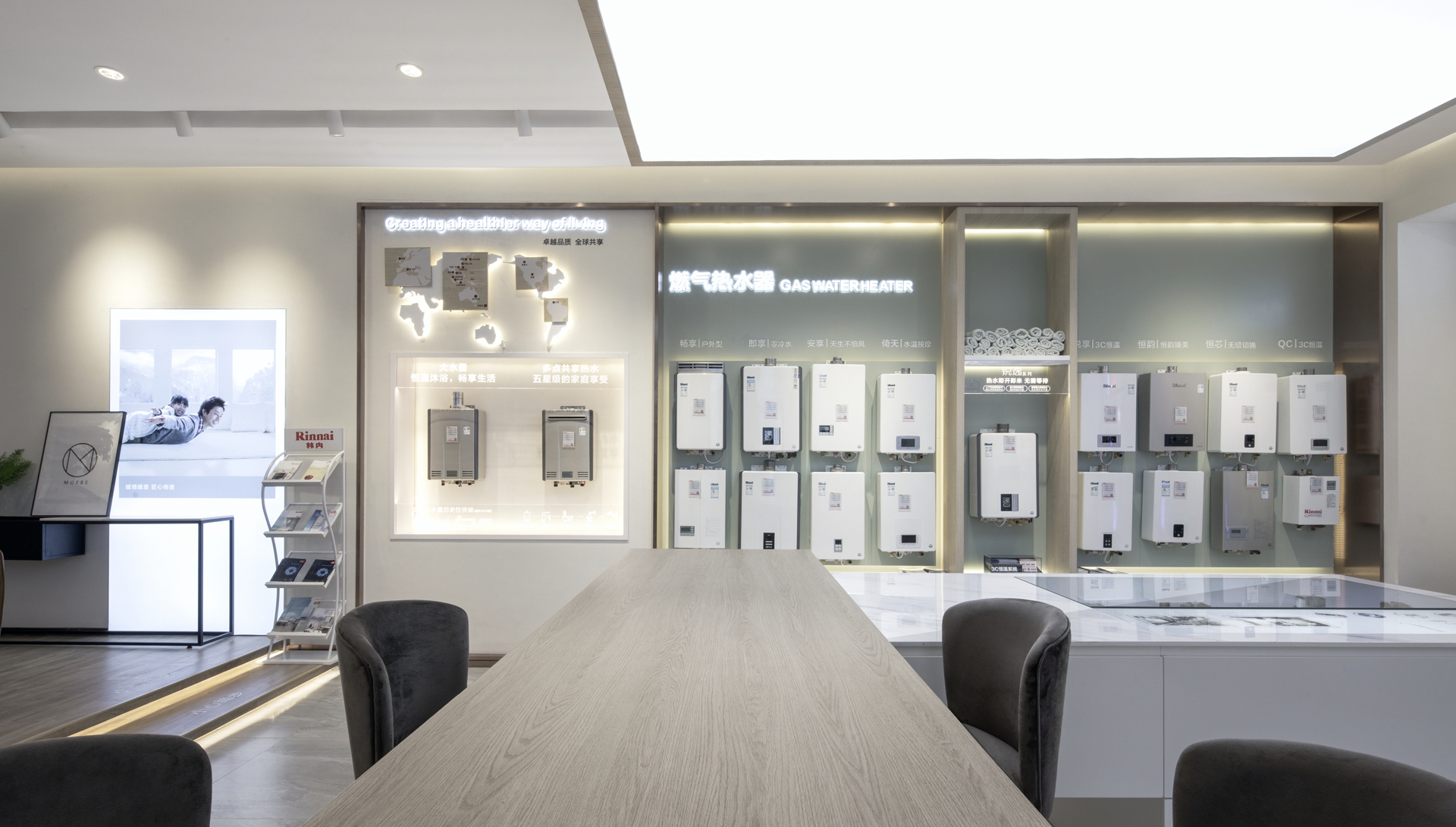 2019年5月,林内旗舰生活馆正式亮相上海红星美凯龙金桥商场。瑞德设计·空间以“体验”为核心,尝试从新的消费形态中寻找新的品牌诠释方式。林内拥有百年品牌历史,如何让让这个品牌与年轻一代的消费者沟通是项目的一大挑战。瑞德设计·空间营造了一个会自己表达的空间,让产品演绎自己的故事,并清晰传达给顾客,顾客在其中能看到自己生活的影子,能感受到所向往的生活方式。“体验”作为设计关键词,结合品牌更高端、更国际化的定位,将产品套嵌于顾客熟悉的生活场景,提供了满足自己家庭需求的解决方案。这样的终端比传统的商业空间更能打动消费者。